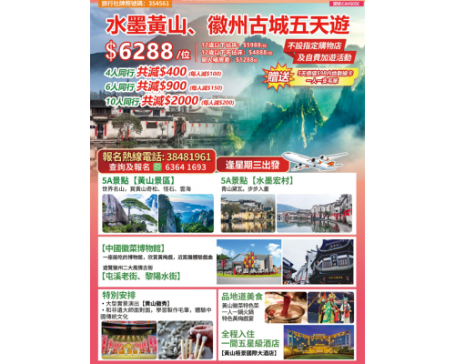 水墨黃山、徽州古城五天遊